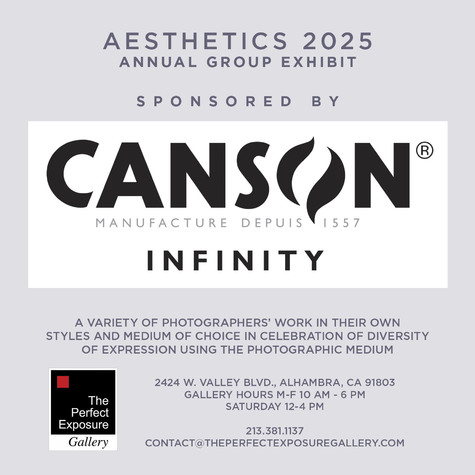 For the Twenty-fifth year, we take pride in supporting the work of upcoming and established photographers in a variety of mediums and themes during our group show Aesthetics 2025. Special thank you to CansonĀ® Infinity for sponsoring this year's Aesthetics group show! All photographs were printed with CansonĀ® Infinity Platine Fibre Rag, our preferred media for photographic prints.