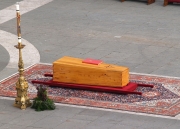 The photographs in 15 Years Ago....document his passing. Presented are images of the people who flocked to Rome to pay their last respects, and of the funeral mass that sent the most traveled pope in the history of the papacy on his final journey.